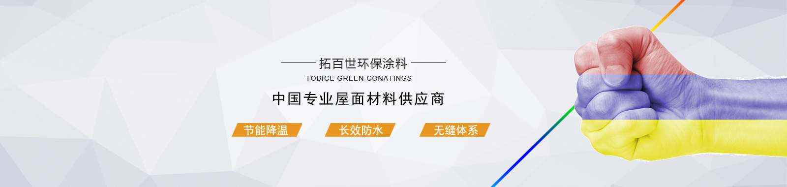 拓百世公司主營水性丙烯酸屋面節(jié)能防水涂料。以研發(fā)、生產涼爽型屋面防水體系、防銹型屋面防水體系、保溫型防水體系、防腐型防水體系產品為主。產品體系完整。